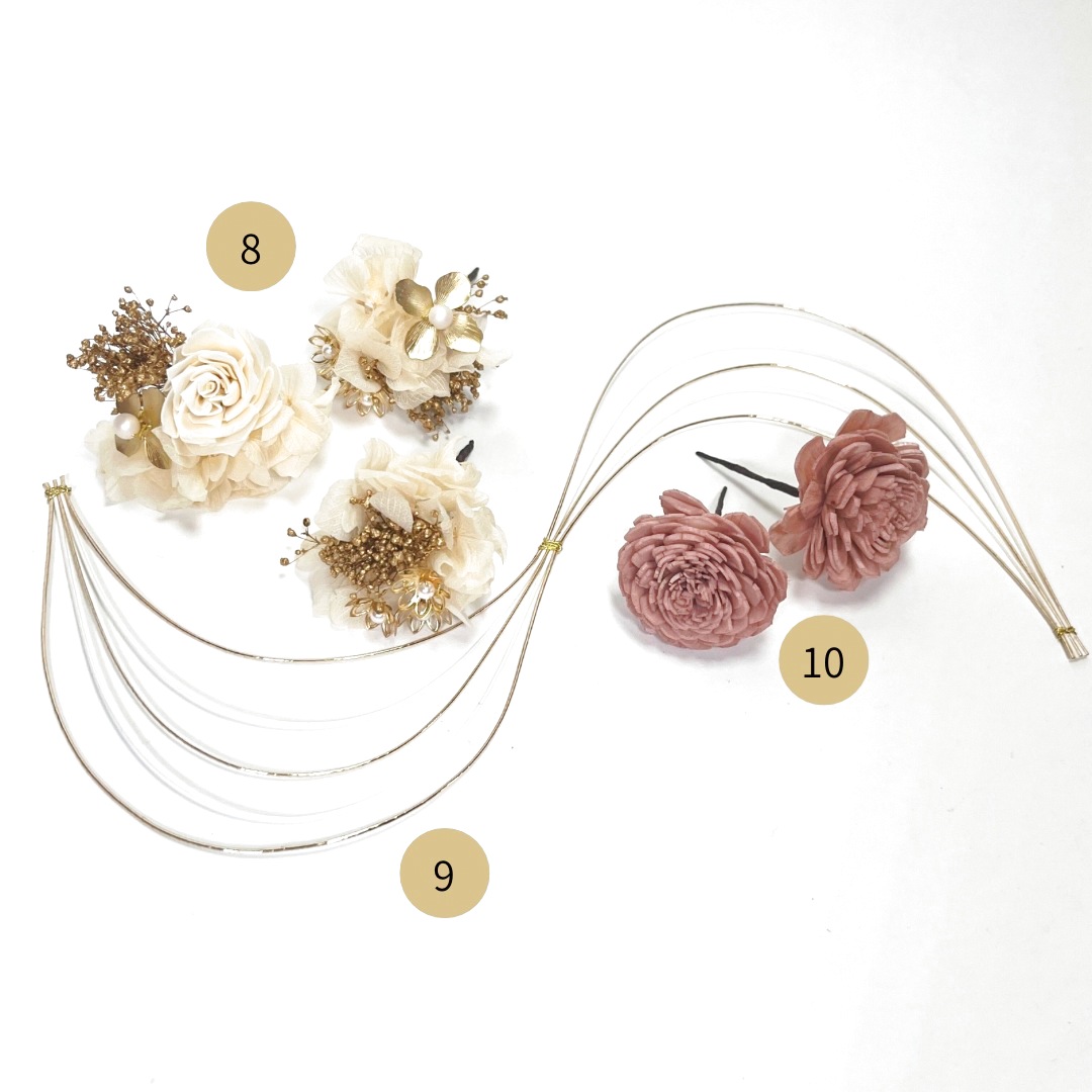 いずれも生花を加工したもので摩擦や衝撃で花びらが欠けやすいため、丁寧にお取り扱いください。