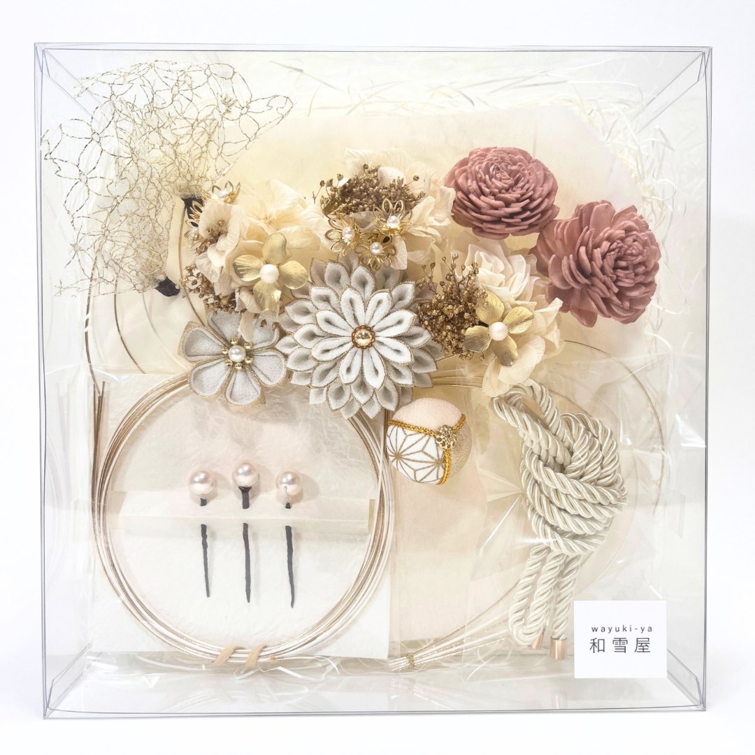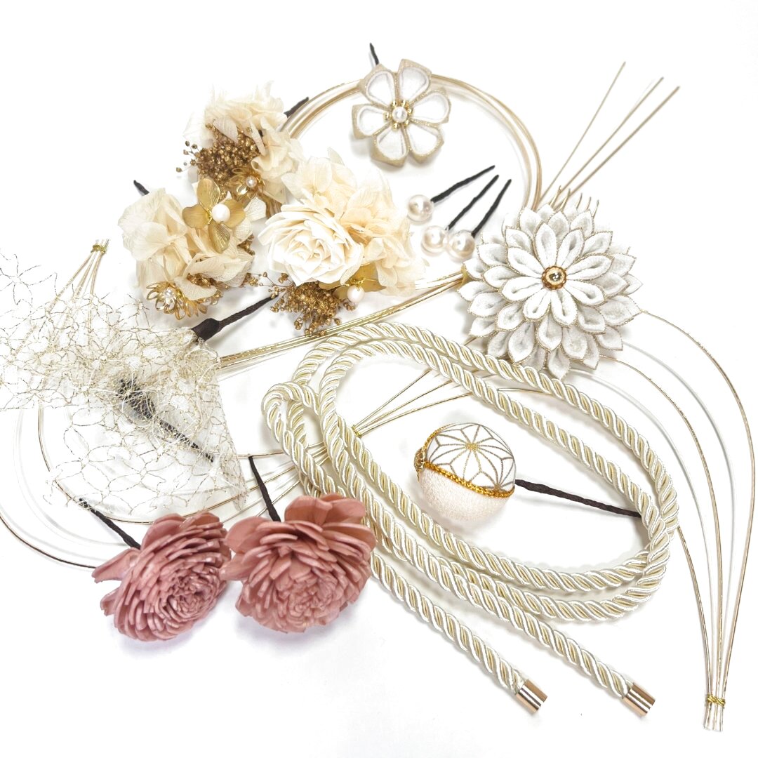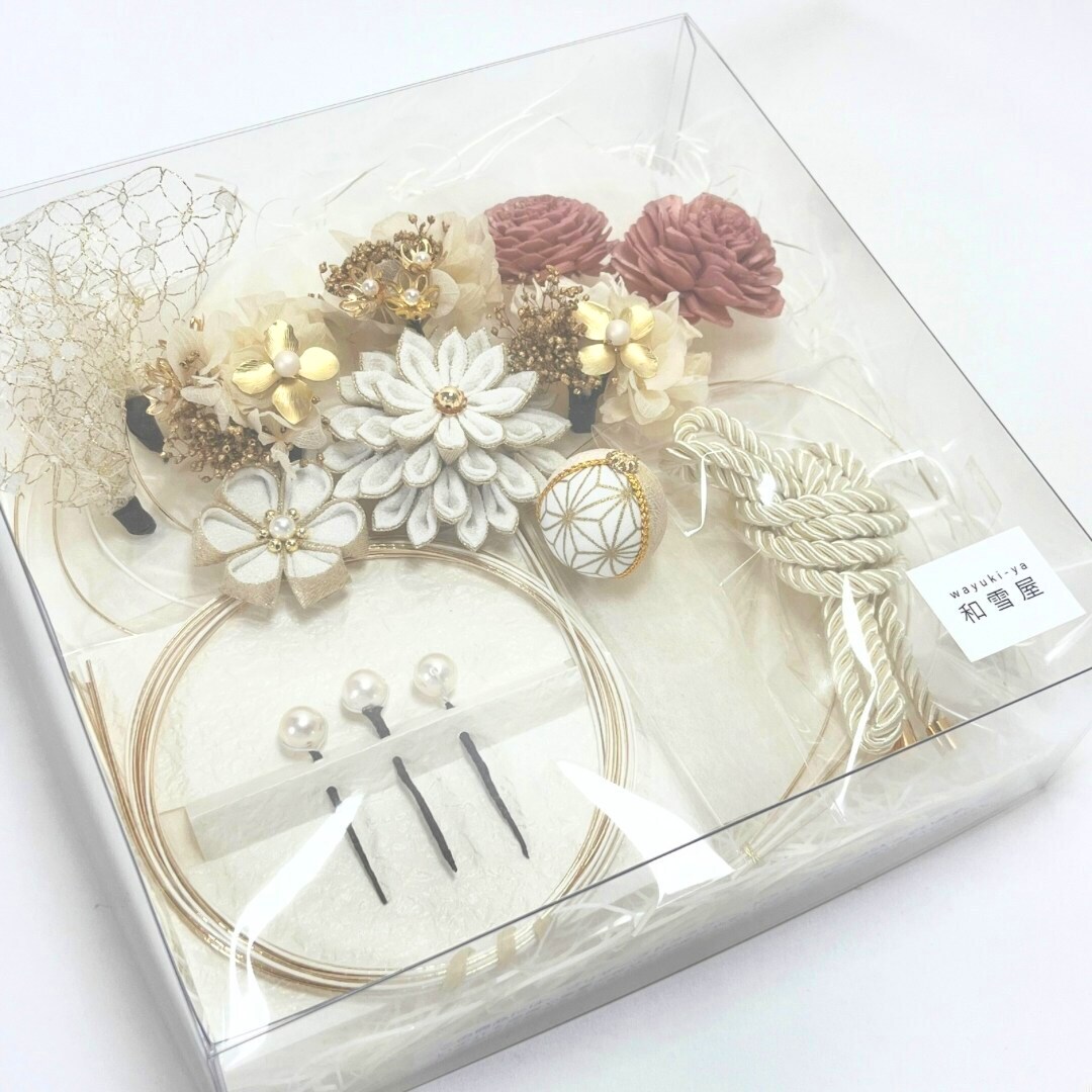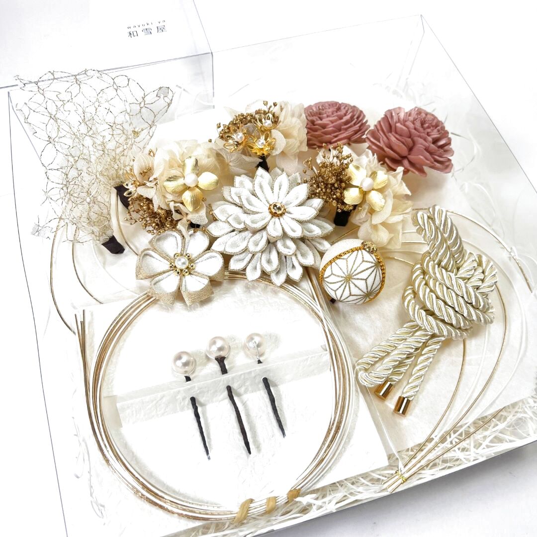 チュールピン、水引、玉飾りなど、可愛らしい小物も盛りだくさんです。