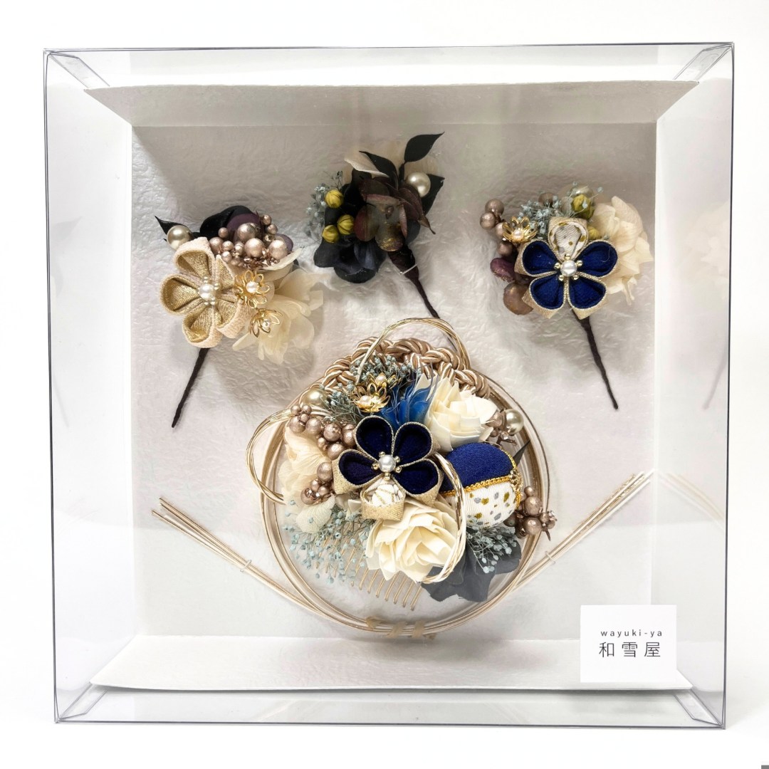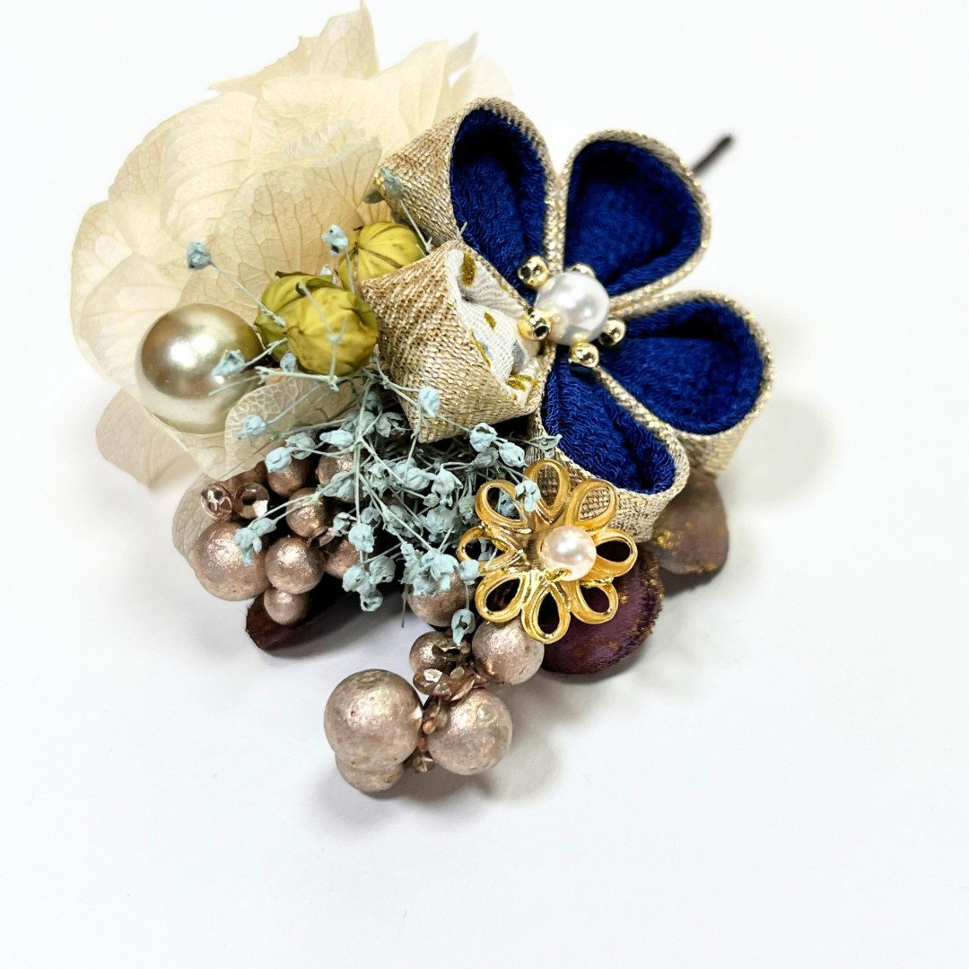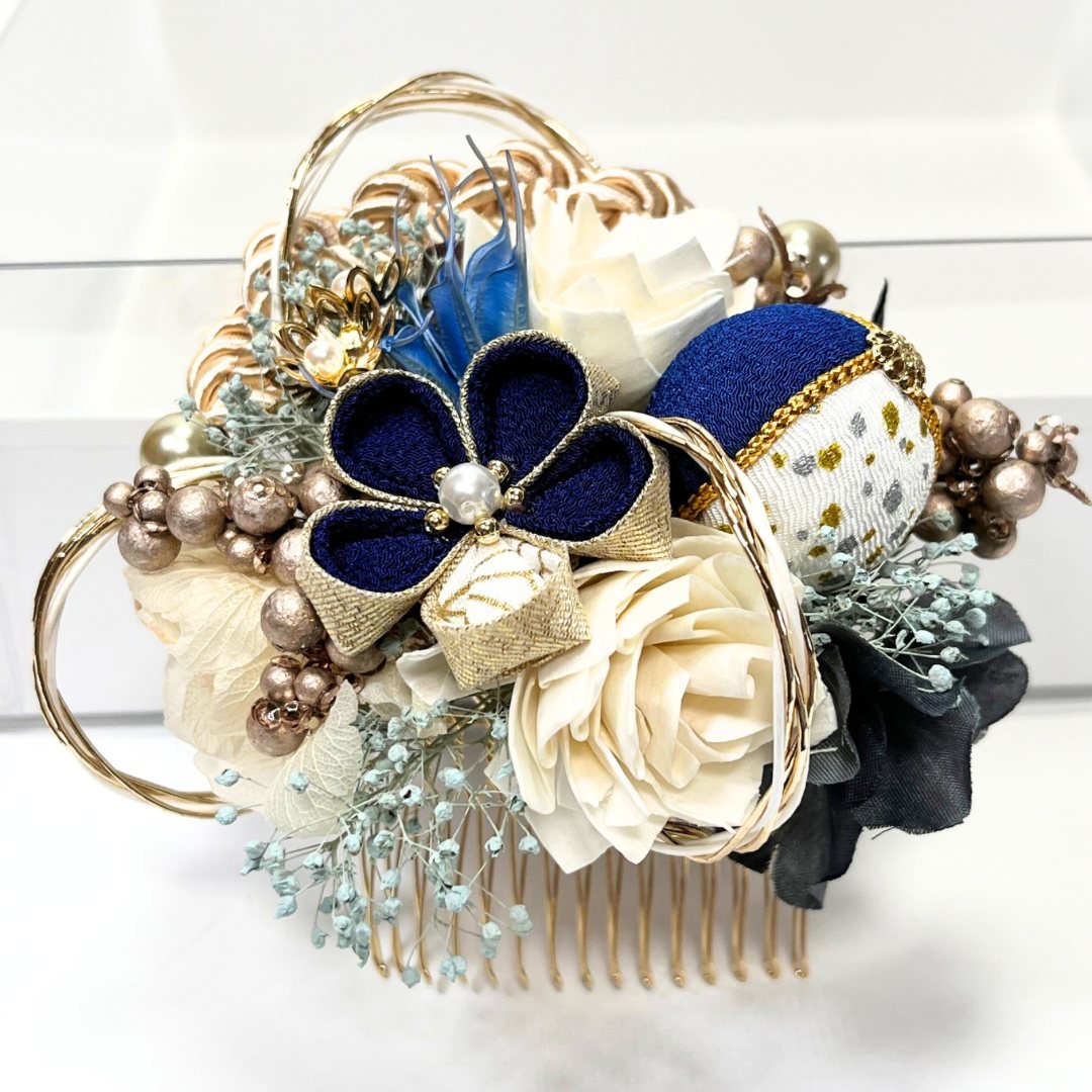 18-4【プリザーブド&ドライフラワーコーム】くすみ×青