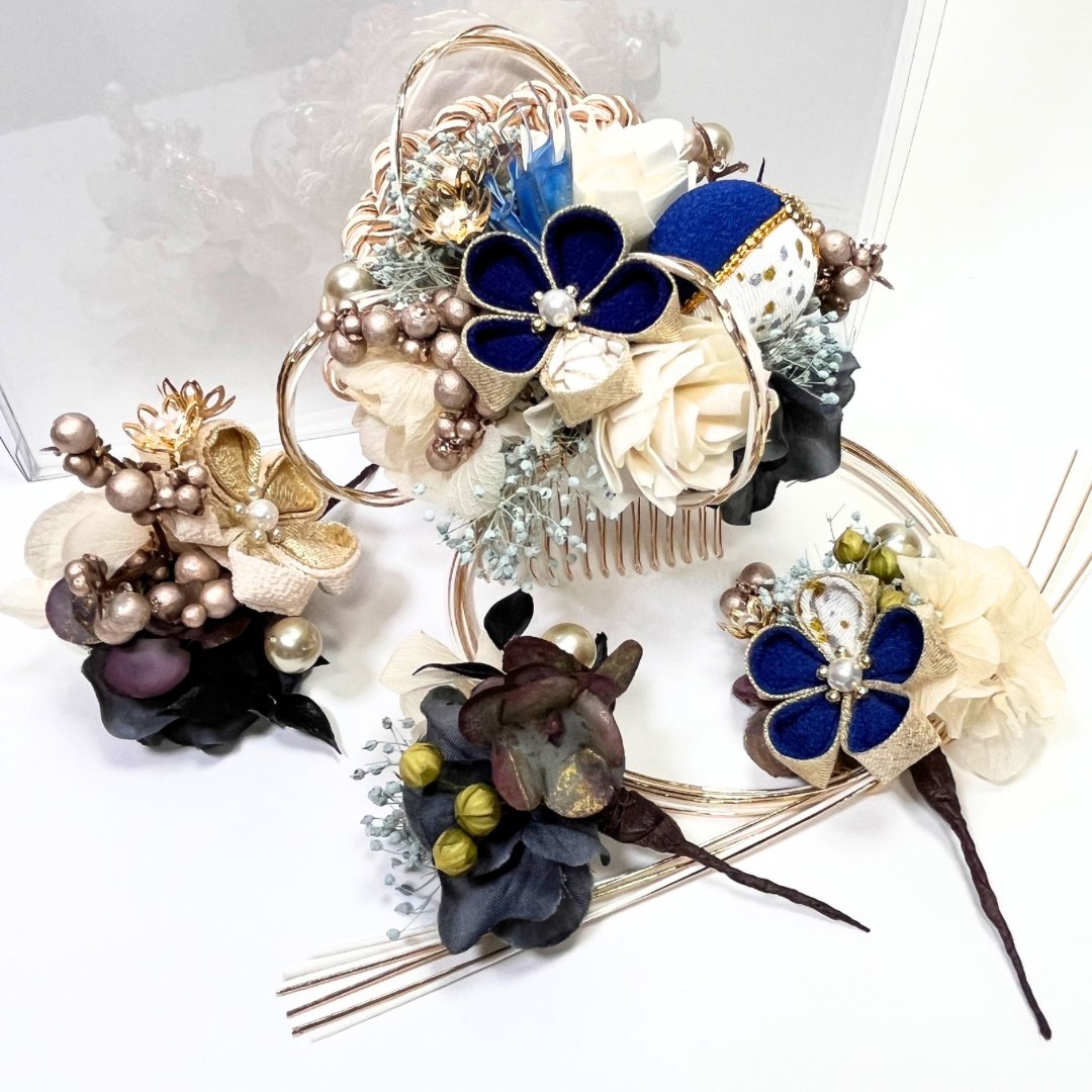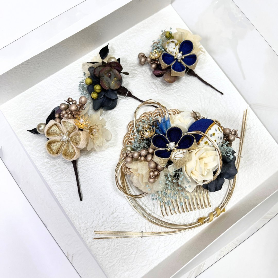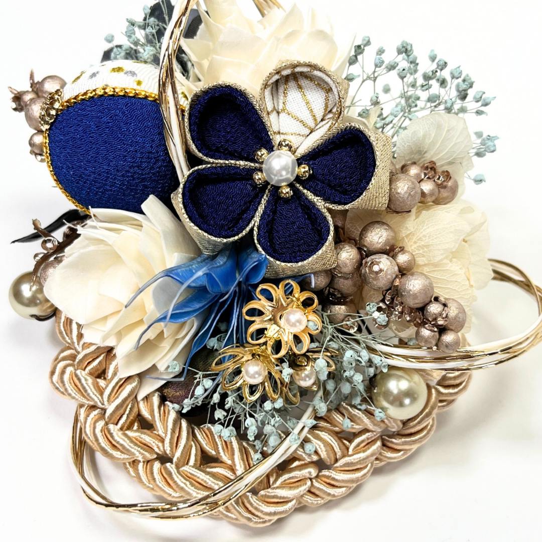 18-4【プリザーブド&ドライフラワーコーム】くすみ×青