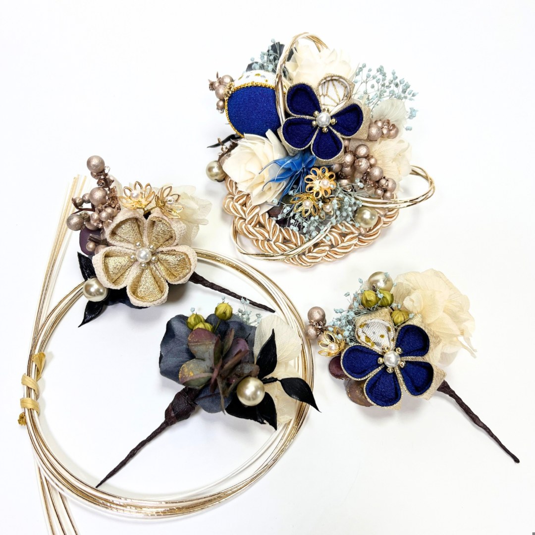 いずれも生花を加工したもので摩擦や衝撃で花びらが欠けやすいため、丁寧にお取り扱いください。