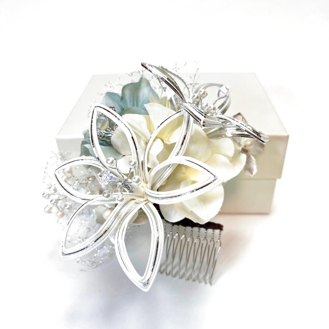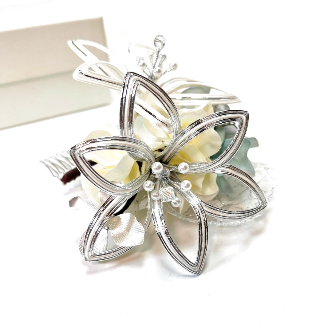 ・水引白百合 中コーム 1個 縦12cm、横12cm、厚さ6cm
