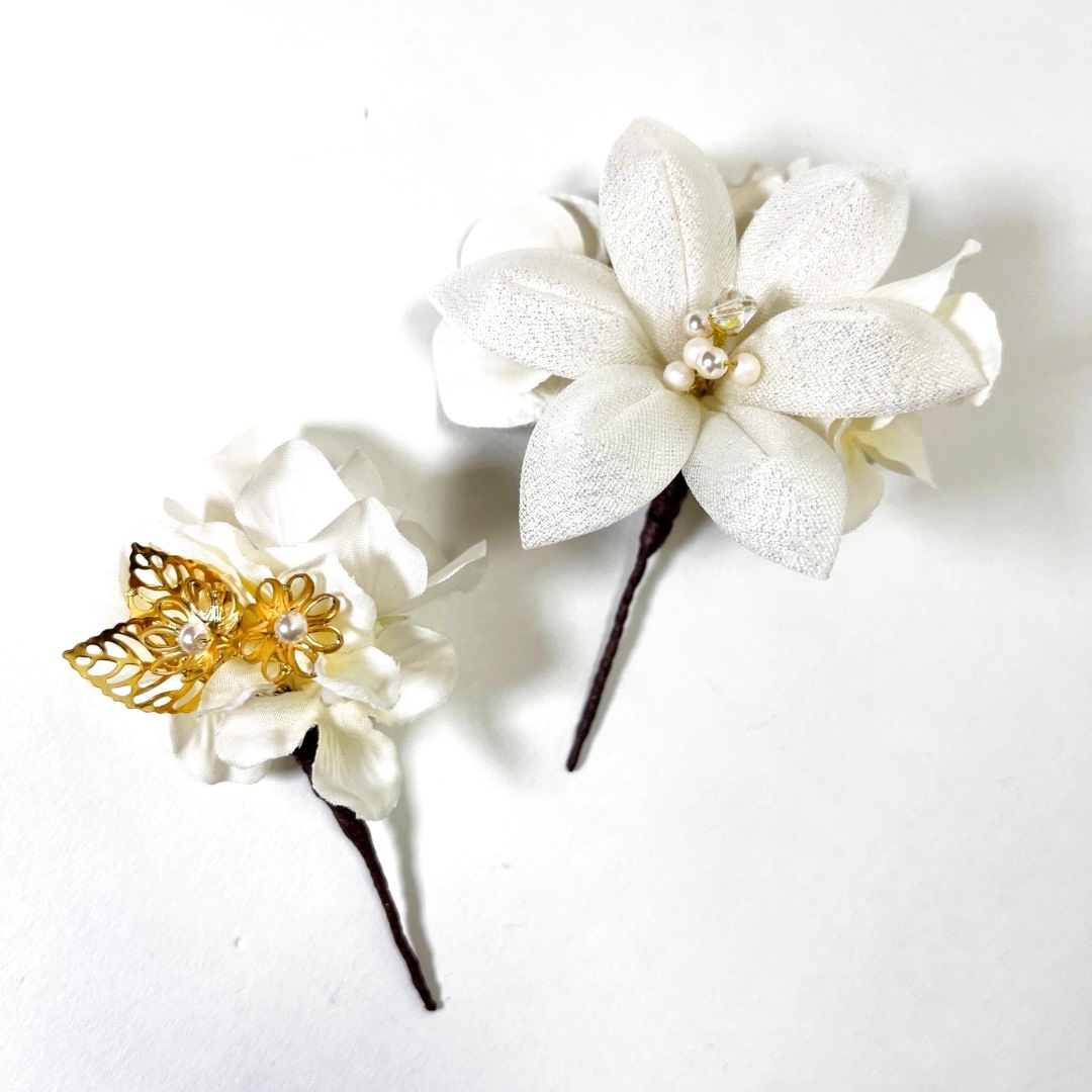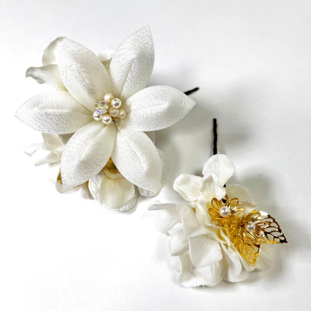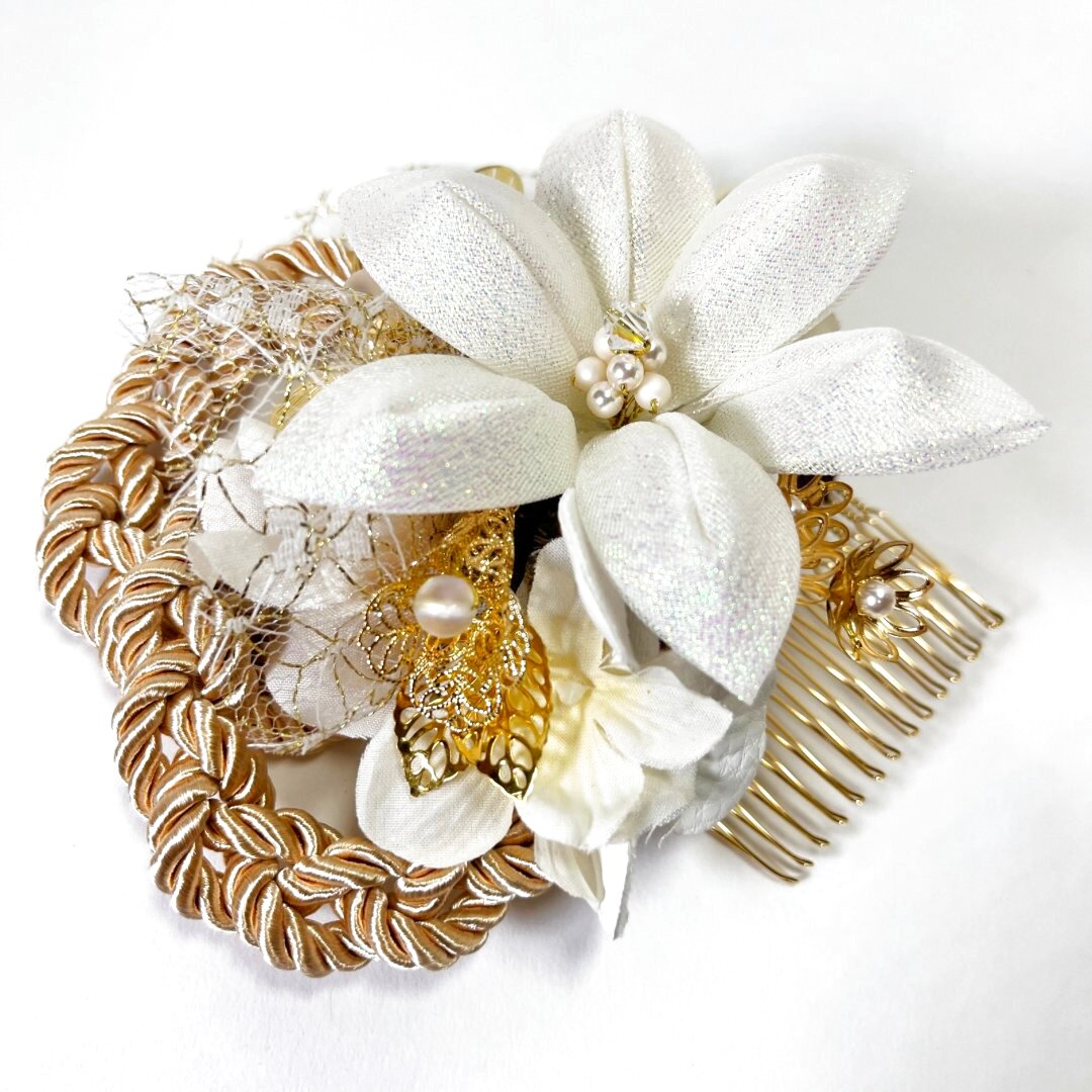 白系の髪飾りは、振袖や袴の色柄を選ばず合わせやすいのが魅力。