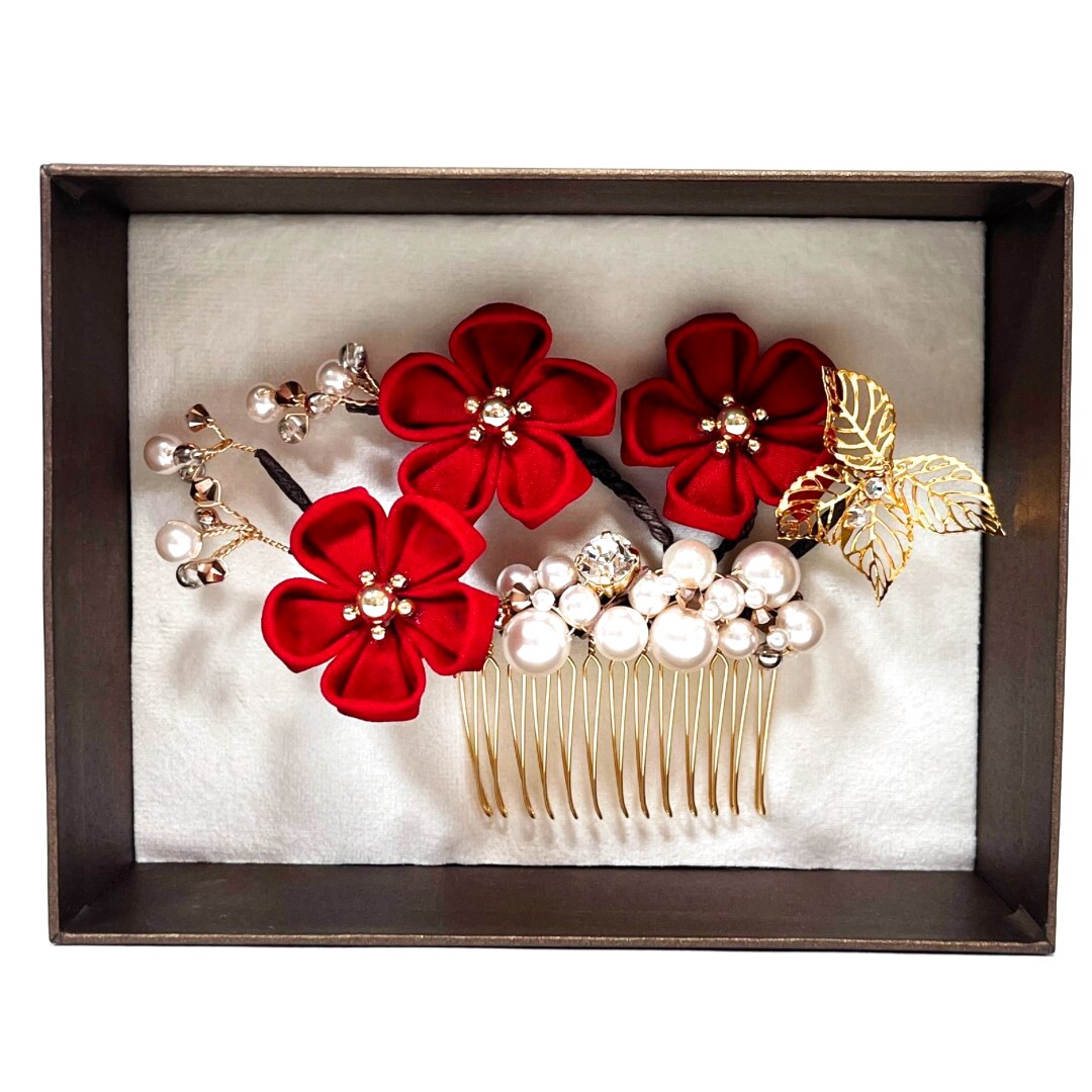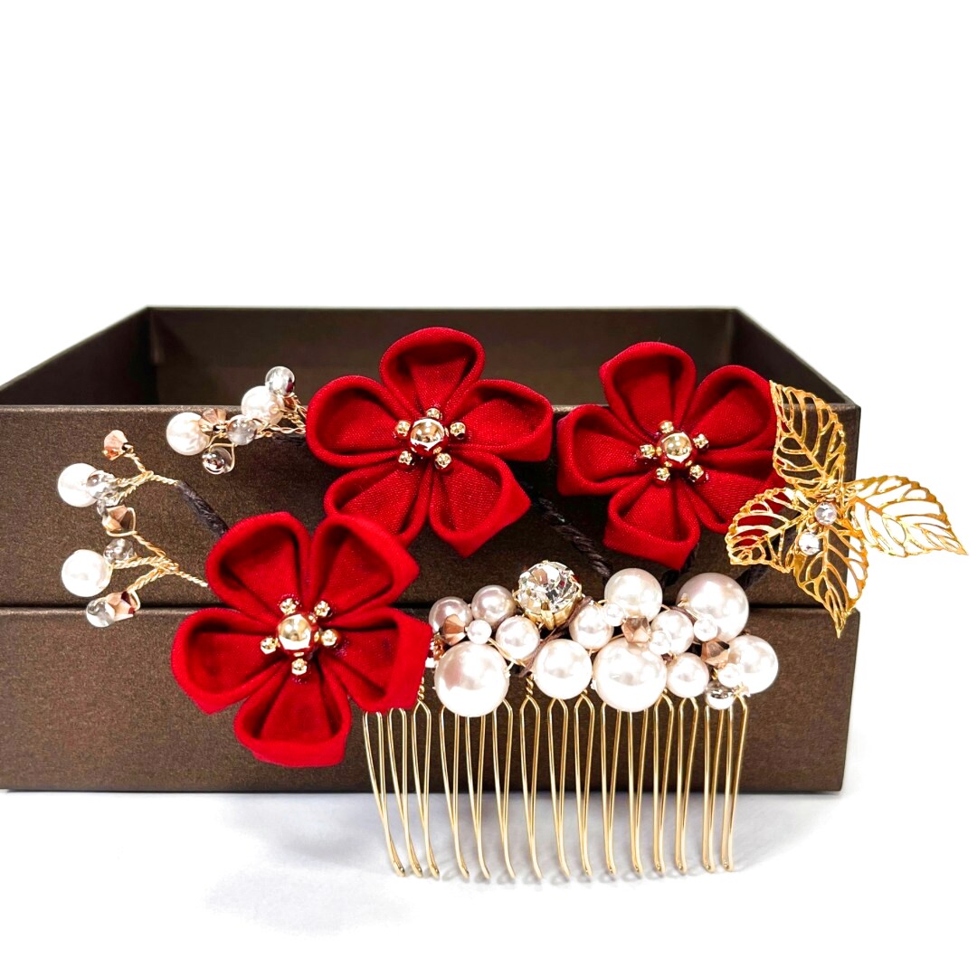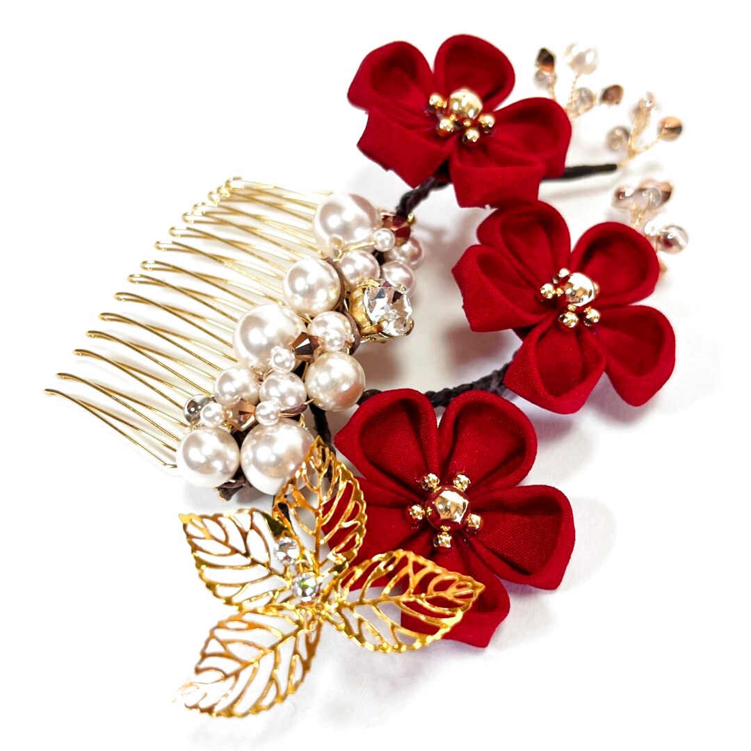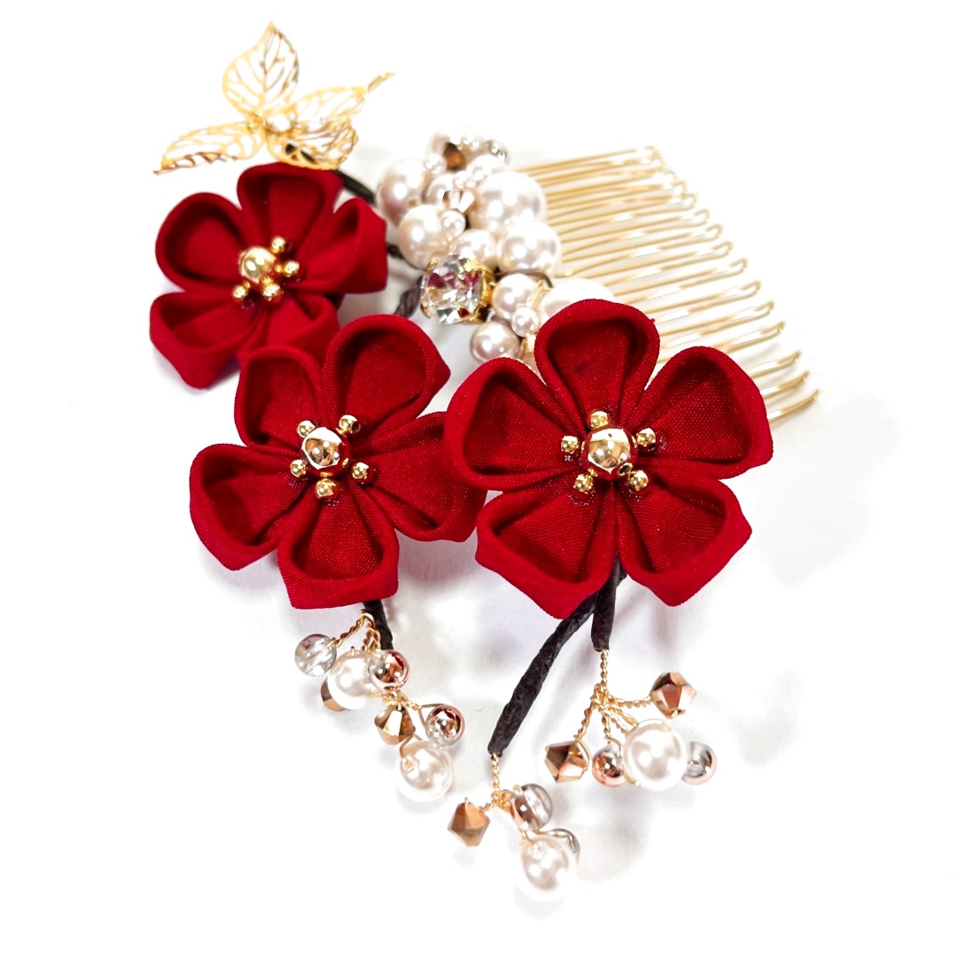 #梅つまみ細工 #正絹 #パール #蝶 #成人式 #卒業式 #振袖 #袴