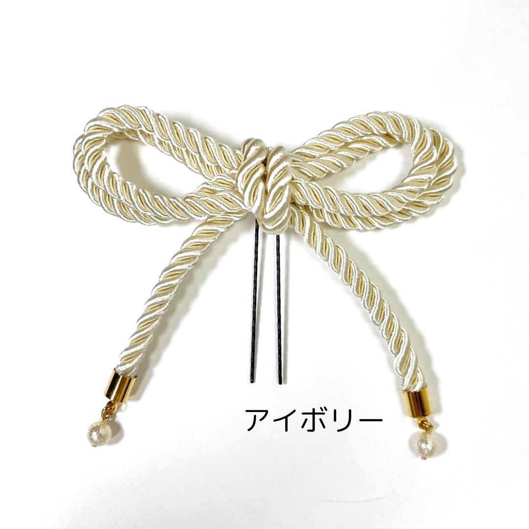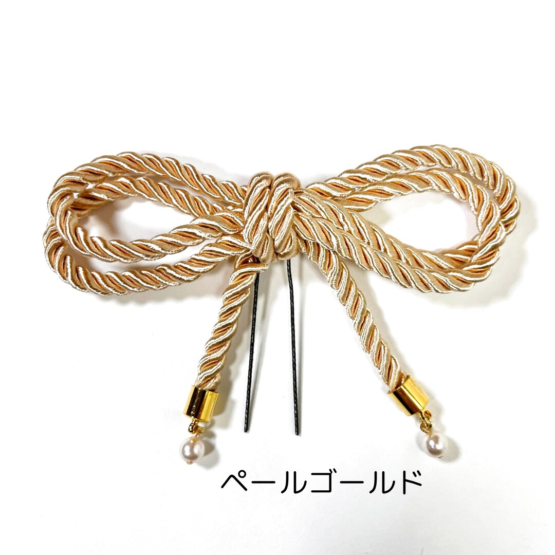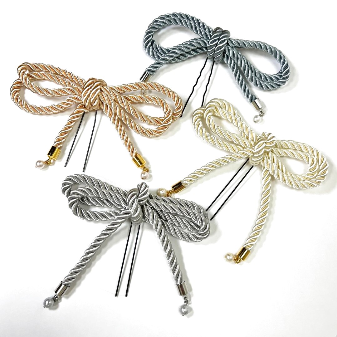 和風・洋風どちらにも合う、ツイストコードで作ったダブルリボン。小さな揺れるパールがポイントです。